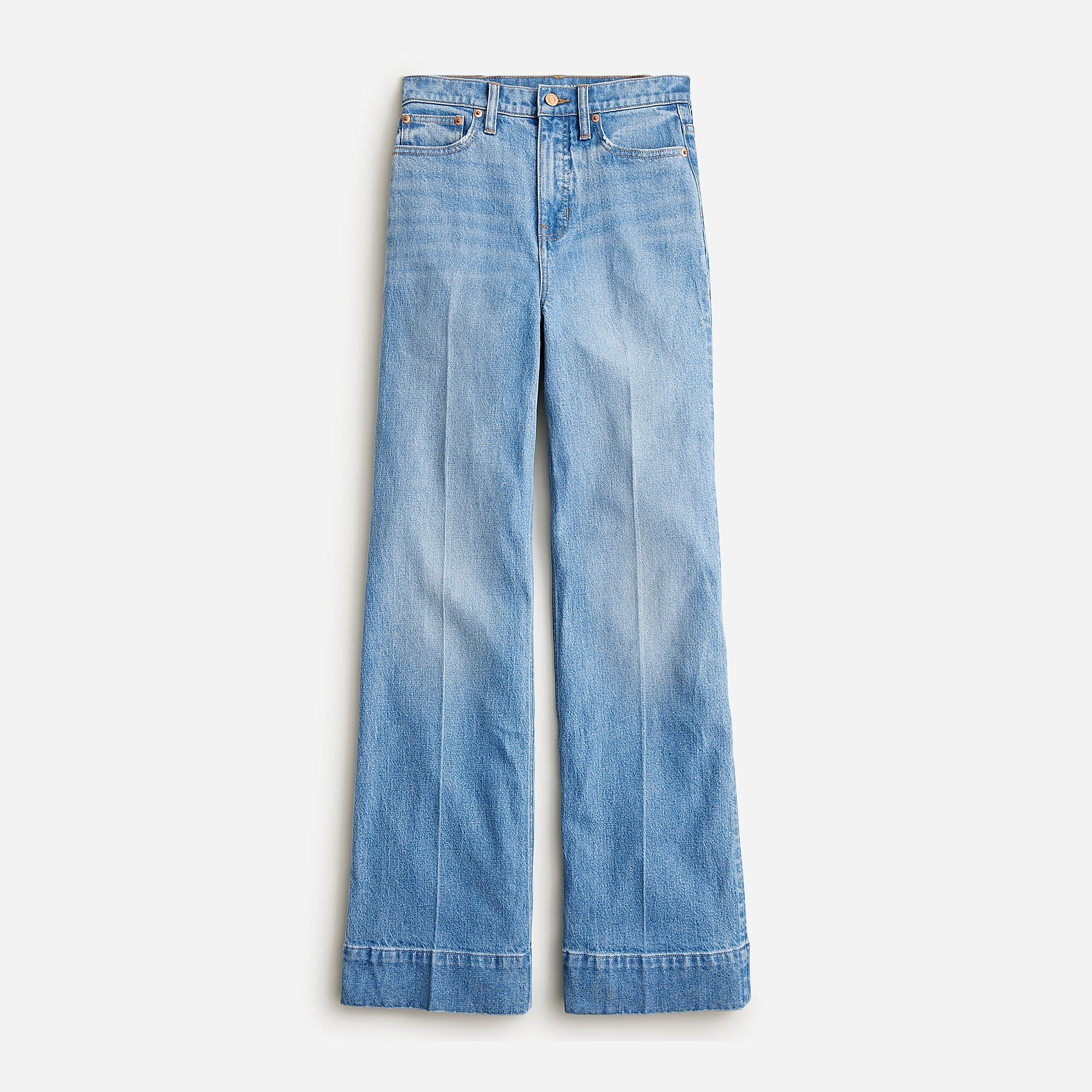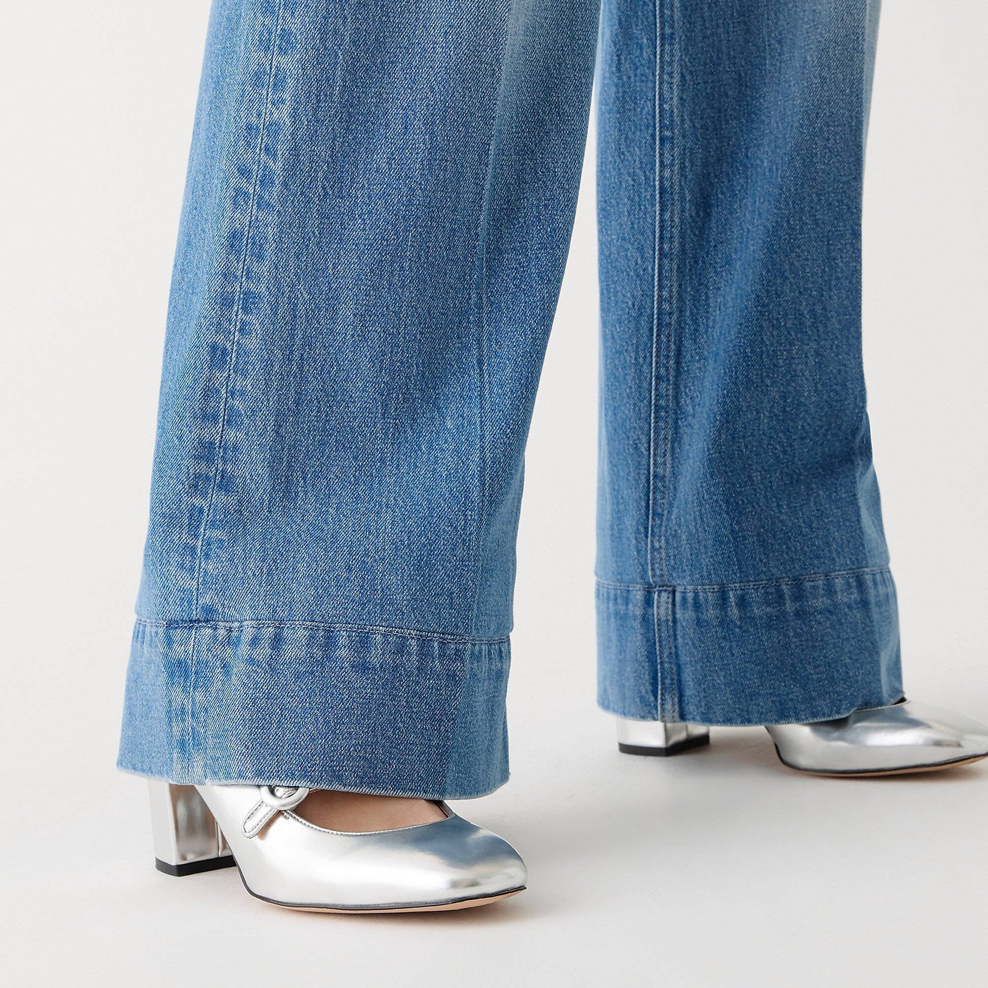 Das hoch geschnittene Design mit voller Beinlänge lässt deine Beine insgesamt länger und schlanker wirken. Diese High-Waist-Jeans mit weitem Bein sind das unkomplizierte Everyday-Piece, das jedem Outfit einen Hauch Glamour verleiht.