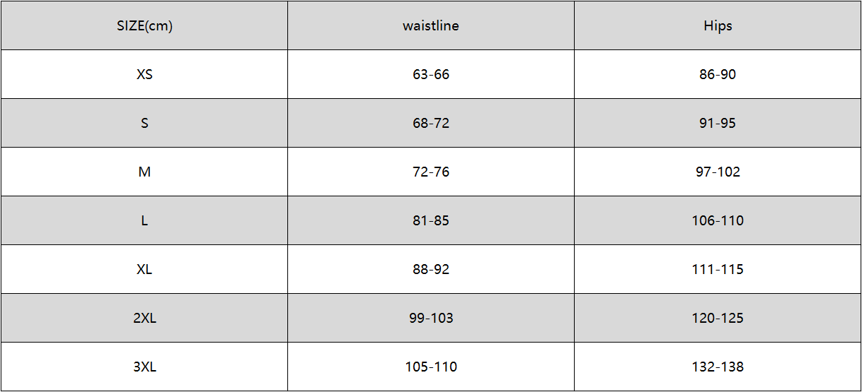Größentabelle: